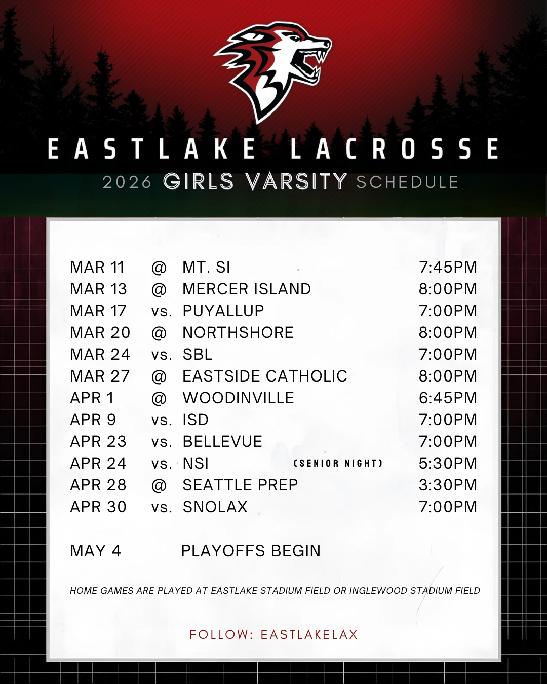 Girls Varsity and JV Schedules: